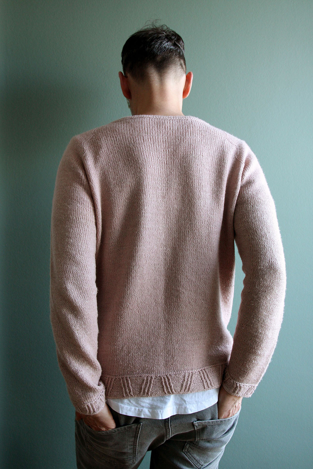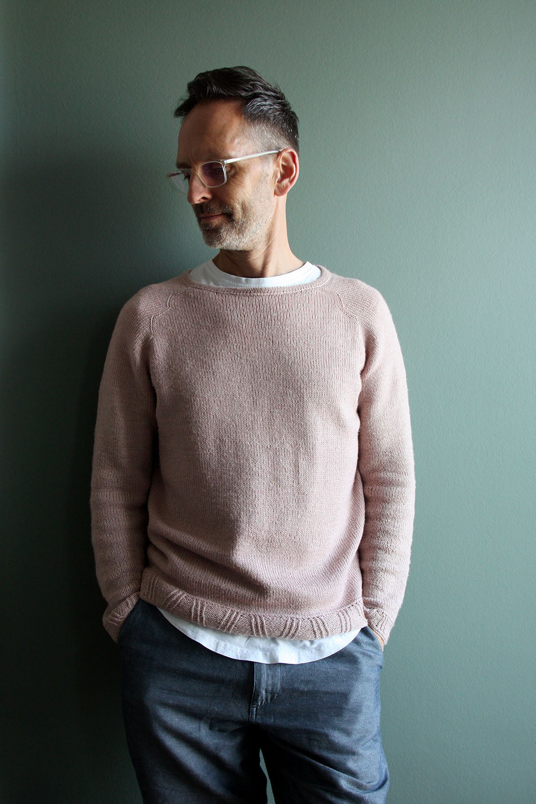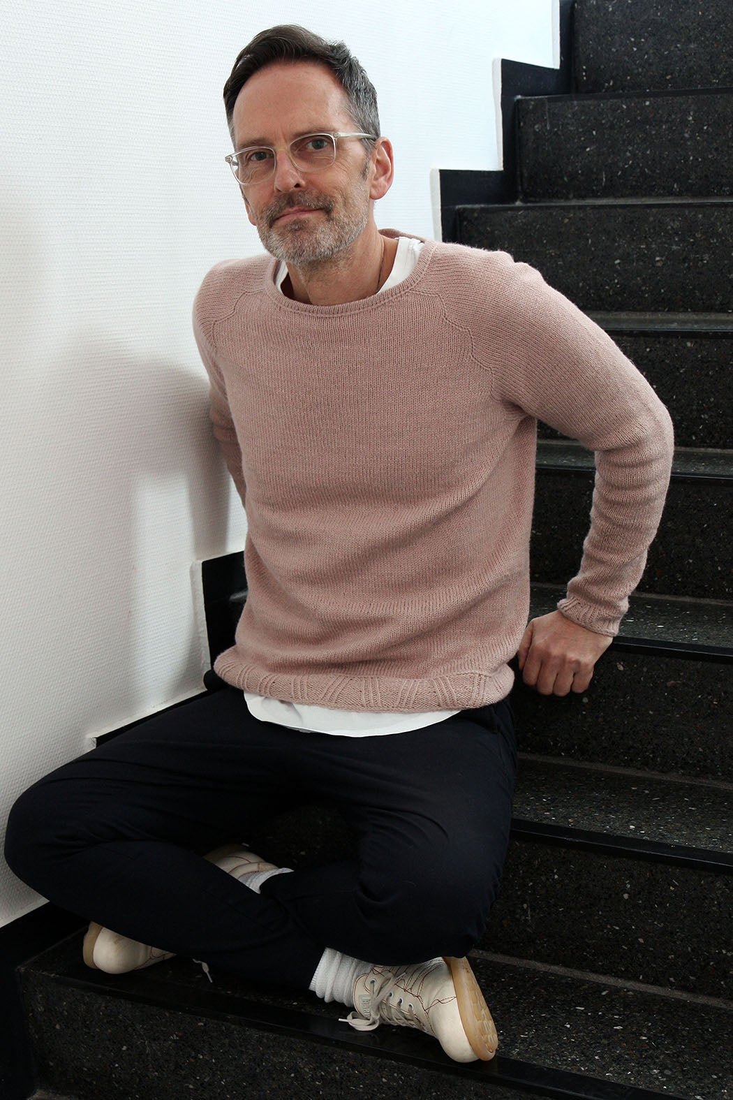 Die Inspiration für dieses Design führt weit zurück in meine Kindheit. Jedes Detail ist inspiriert von dem Treppenhaus des Mid-Century Wohnhauses, in dem ich aufgewachsen bin. Die strukturierten Bündchen bilden das Muster des Geländers ab, während die Zickzack-Raglanlinien an Treppen erinnern.