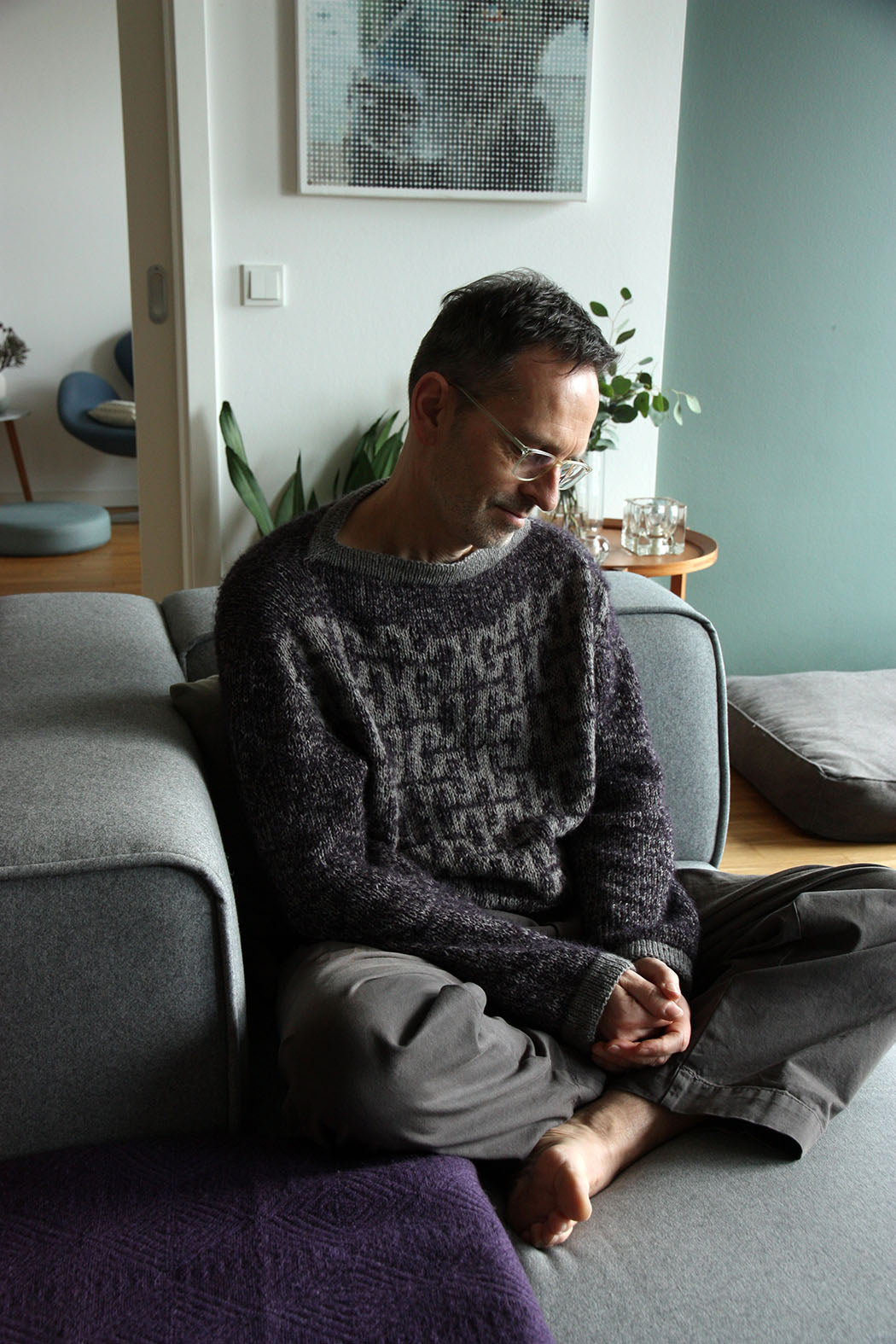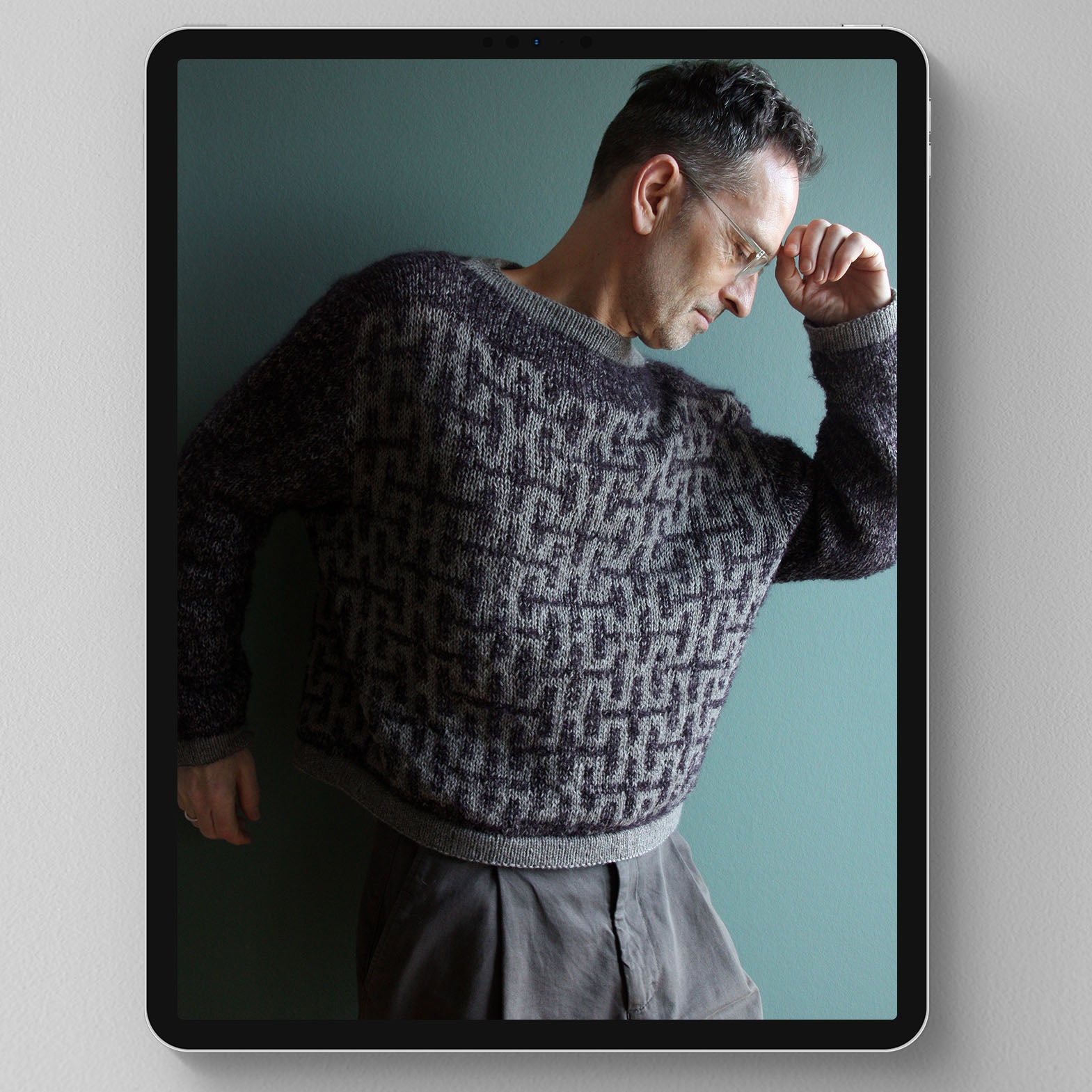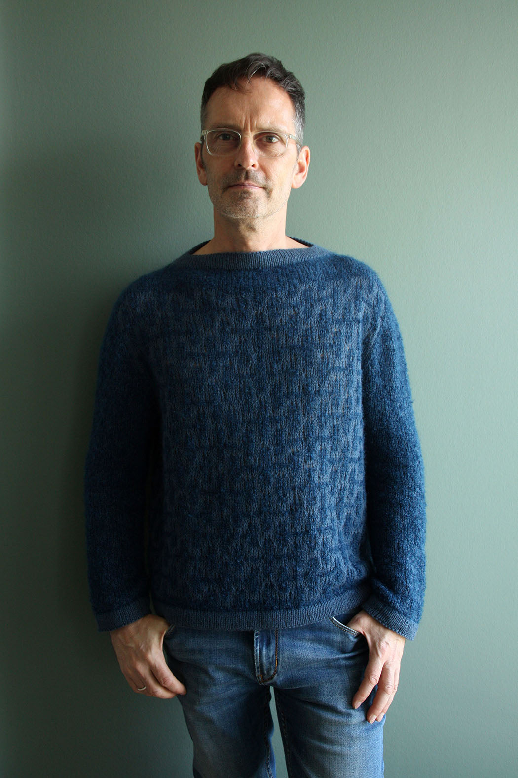 Hanseatic Sweater hat eine oversized Form mit leicht überschnittener Schulter und trägt sich am besten mit einem Bewegungsspielraum von 15 - 25 cm / 6 - 9.8″. Die Länge von Körper und Ärmeln kann individuell angepasst werden (die erforderliche Garnmenge wird sich dadurch verändern).